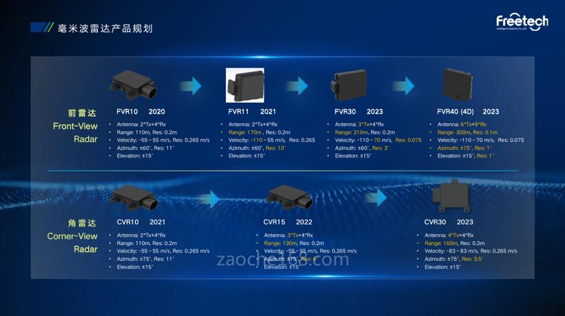 福瑞泰克雷達(dá)分為前雷達(dá)和角雷達(dá)。其中,角雷達(dá)CVR30定位于能夠用于行車和泊車的毫米波雷達(dá)。其特點(diǎn)在于提供大幅增強(qiáng)的Radar周視感知能力,能夠大幅提升行泊一體的感知能力。