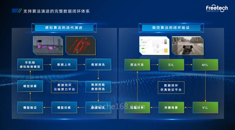 感知算法方面,通過感知檢測(cè)、數(shù)據(jù)上傳、數(shù)據(jù)清洗、數(shù)據(jù)挖掘與篩選、數(shù)據(jù)標(biāo)注、模型訓(xùn)練、模型驗(yàn)證與部署等環(huán)節(jié)進(jìn)行持續(xù)的迭代演進(jìn)。而在規(guī)控算法方面,福瑞泰克則通過算法開發(fā)、SIL、MIL、VIL等環(huán)節(jié)實(shí)現(xiàn)規(guī)控算法的閉環(huán)驗(yàn)證。