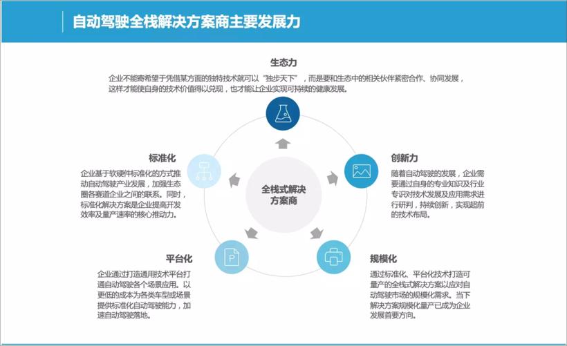 當(dāng)下智能駕駛?cè)珬J浇鉀Q方案商主要通過(guò)打造標(biāo)準(zhǔn)化方案、平臺(tái)化技術(shù),集成軟硬件協(xié)同能力,向規(guī)?;慨a(chǎn)演進(jìn)。