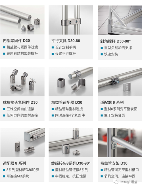 組裝輕松,改裝靈活,item D30 精益生產(chǎn)系統(tǒng)多變的產(chǎn)品可以滿足您對(duì)工廠設(shè)備的定制需求。