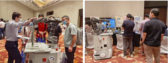 移動操縱機器人應用MoMA吸引了會場眾多專業(yè)人士前來交流。通過移動機器人和協作機器人的整合,可以自主進行抓取和放置,代替人工完成上下料工作,實現生產線的柔性化搬運。引入工廠后,可節(jié)省人力成本,提高生產效率。