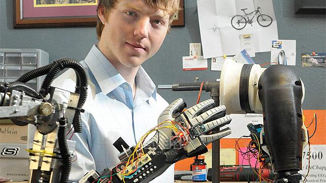 當(dāng)年,伊斯頓·拉查佩爾 (Easton LaChappelle) 決定打造一只功能齊全的假手時(shí),年僅 14 歲。拉查佩爾在科羅拉多州的山中小鎮(zhèn)曼科斯長(zhǎng)大,他所在的八年級(jí)只有 23 個(gè)人。百無(wú)聊賴(lài)的他對(duì)機(jī)器人技術(shù)如癡如迷,很快就超出了學(xué)校所傳的知識(shí)范圍?!拔议_(kāi)始窩在臥室,通過(guò)網(wǎng)絡(luò)自學(xué)所需的機(jī)器人技術(shù),”拉查佩爾說(shuō)。