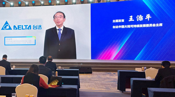 臺(tái)達(dá)中國大陸可持續(xù)發(fā)展委員會(huì)主席王治平在會(huì)發(fā)表“臺(tái)達(dá)以節(jié)能為核心 打造ESG領(lǐng)導(dǎo)力”主題演講。