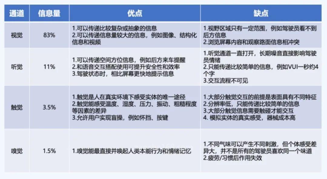 觸覺:方向盤+按鍵+中控+擋位+座椅+安全帶更多用于提示場景
