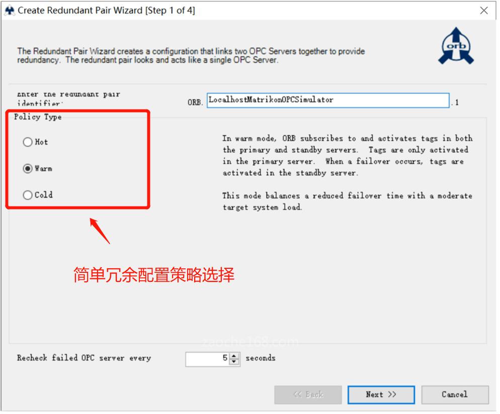 熱模式——ORB在主服務(wù)器和備用服務(wù)器上都訂閱并激活標(biāo)簽。這種模式最大限度地減少了故障切換期間的數(shù)據(jù)缺口,代價(jià)是增加了目標(biāo)系統(tǒng)的負(fù)載,只適用于當(dāng)兩個(gè)OPC服務(wù)器可以同時(shí)從目標(biāo)系統(tǒng)中讀取數(shù)據(jù)的情況。