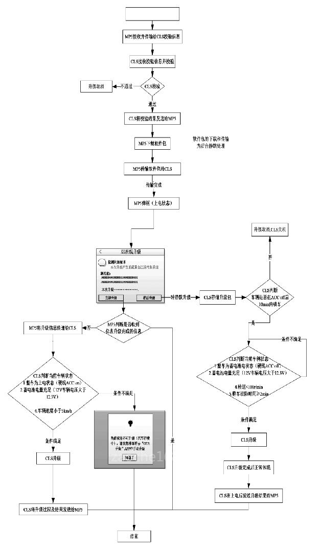 軟件包校驗通過后,車機開始下載軟件包并完成后臺傳輸,儀表反饋升級包傳輸結(jié)果,反饋車機觸發(fā)車機彈框提示,用戶點擊確認(rèn)后,車機反饋給儀表請求開始升級,儀表將升級過程及結(jié)果反饋給車機,再反饋給T-BOX,最終上報到平臺。