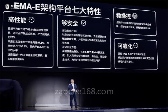 在“光合未來”計劃的戰(zhàn)略指引下,東風(fēng)風(fēng)行發(fā)布了EMA-E架構(gòu)、鎧甲電池、全新“馬赫”MHD混動系統(tǒng)三大核心技術(shù)。東風(fēng)風(fēng)行EMA-E新能源專屬架構(gòu)可兼容純電及混動兩大主流新能源動力,支持400-1200公里續(xù)航;并首搭華為TMS2.0熱泵熱管理系統(tǒng),對比業(yè)界集成式熱泵,-7℃能耗優(yōu)化20%。此外,選用的高效EHB能量回收系統(tǒng),可提升6%的續(xù)航。EMA-E架構(gòu)還為產(chǎn)品帶來更好的操控體驗,舒適性提升18%,操穩(wěn)特性提升8%,可實現(xiàn)穩(wěn)定動態(tài)性能和良好駛乘體驗?! ?/FONT>