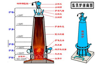高爐煉鐵是現(xiàn)代煉鐵的主要方法,鋼鐵生產(chǎn)中的重要環(huán)節(jié)。這種方法是由古代豎爐煉鐵發(fā)展、改進(jìn)而成的。盡管世界各國(guó)研究發(fā)展了很多新的煉鐵法,但由于高爐煉鐵技術(shù)經(jīng)濟(jì)指標(biāo)良好,工藝簡(jiǎn)單,生產(chǎn)量大,勞動(dòng)生產(chǎn)率高,能耗低,這種方法生產(chǎn)的鐵仍占世界鐵總產(chǎn)量的95%以上。