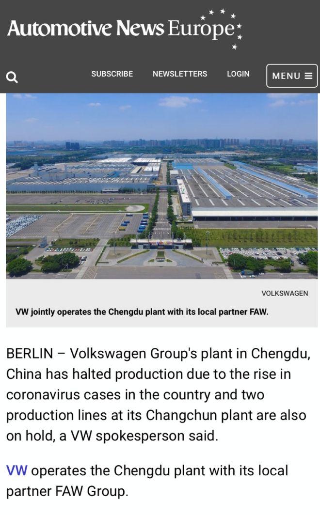 據(jù)多家外媒報(bào)道,大眾汽車發(fā)言人在周一時(shí)表示,因零部件短缺,一汽-大眾成都工廠和長春工廠的兩條生產(chǎn)線已經(jīng)停產(chǎn),沒有預(yù)計(jì)恢復(fù)時(shí)間,也沒有閉環(huán)生產(chǎn)規(guī)劃。針對以上報(bào)道,一汽大眾方面暫未回復(fù)。