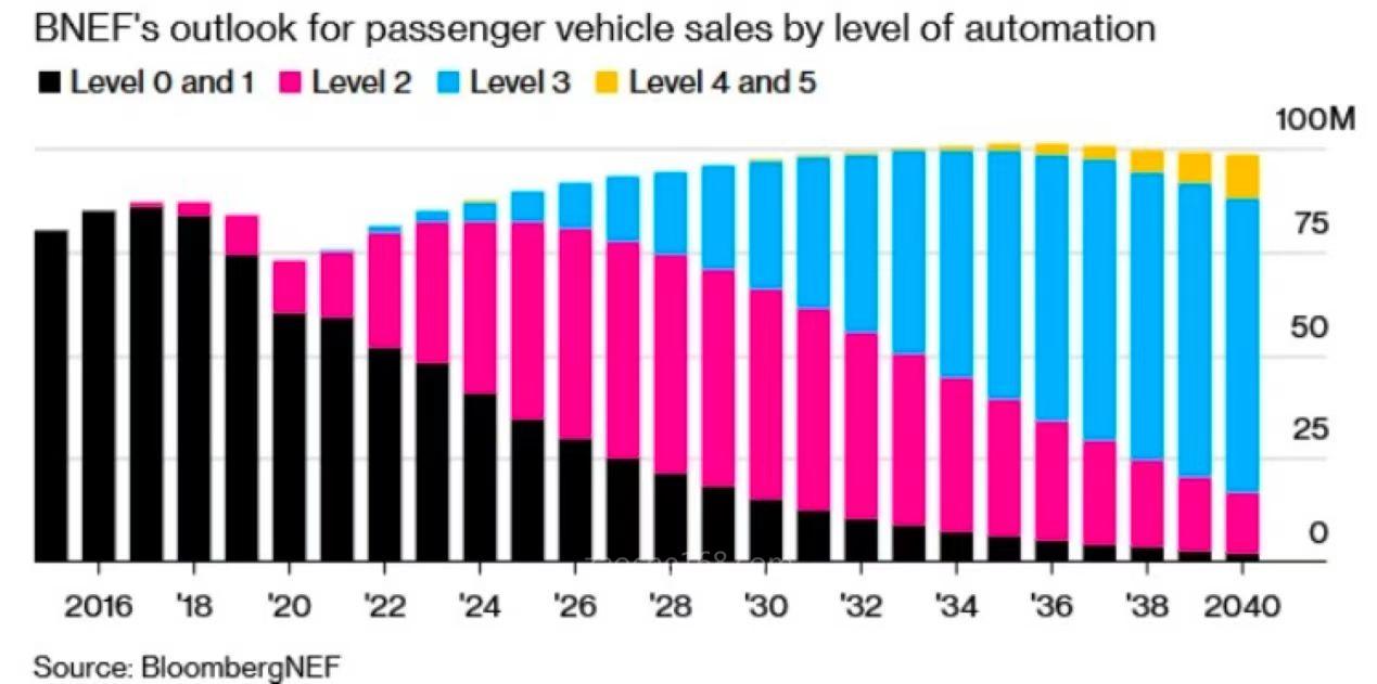 彭博新能源財經(jīng)(BNEF)發(fā)布的最新報告顯示,2025年搭載L2級輔助駕駛系統(tǒng)的汽車將占到全球乘用車總銷量的50%以上。到2030年,全球L2和L3級別的高級駕駛輔助系統(tǒng)(ADAS)市場規(guī)模有望達到2200億美元。作為全球最大的新能源汽車產(chǎn)銷國,中國市場的滲透率大概率會超過上面的數(shù)字,這無疑將給本土自動駕駛芯片公司帶來機會。