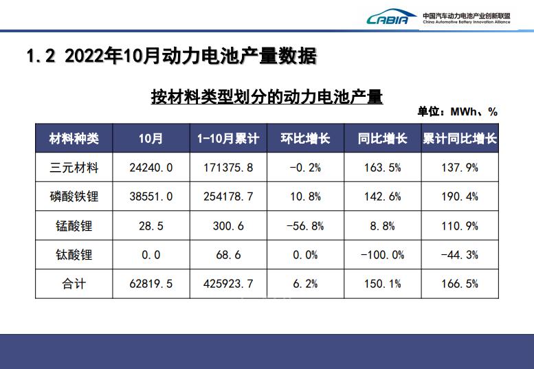 2022年10月動力電池產(chǎn)量數(shù)據(jù)
