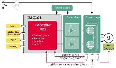 本方案基于Infineon iMOTION?智能驅(qū)動(dòng)器,該驅(qū)動(dòng)器結(jié)合了即用型FOC電機(jī)控制算法,并將數(shù)字電機(jī)控制IC(iMOTION)IMC101T-T038與三相CIPOS? Micro智能功率模塊相結(jié)合。這種組合為低功率電機(jī)驅(qū)動(dòng)應(yīng)用提供了功能齊全的緊湊型逆變器解決方案,是追求更高集成度和更小尺寸客戶(hù)的理想選擇。