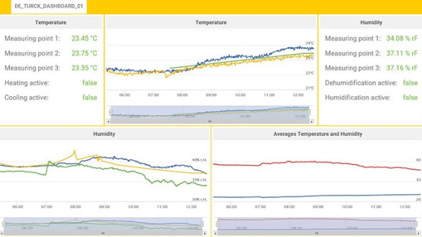 圖爾克食品倉(cāng)儲(chǔ)的工業(yè)云智能狀態(tài)監(jiān)測(cè)系統(tǒng)中的云控制面板,可以清晰顯示所有傳感器的數(shù)據(jù)。無(wú)需任何編程知識(shí)即可設(shè)置狀態(tài)監(jiān)測(cè)視圖或配置SMS或電子郵件自動(dòng)警報(bào)功能,這充分展示了圖爾克“配置而非編程”的設(shè)計(jì)理念,使得任何熟悉標(biāo)準(zhǔn)PC軟件操作的人都可以容易的配置狀態(tài)監(jiān)測(cè)長(zhǎng)期趨勢(shì)記錄或創(chuàng)建CSV文件格式的報(bào)告,實(shí)現(xiàn)食品儲(chǔ)藏狀態(tài)監(jiān)測(cè)數(shù)據(jù)安全高效傳遞。