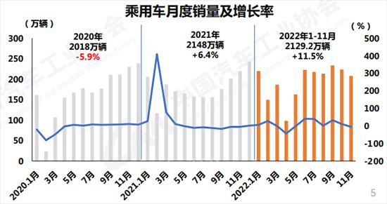 具體到乘用車方面,11月產(chǎn)銷分別完成215.1萬輛和207.5萬輛,環(huán)比分別下降7.8%和7%,同比分別下降3.9%和5.6%;其中,傳統(tǒng)燃油乘用車國內(nèi)銷量114.7萬輛,比上年同期減少48.3萬輛。1-11月,乘用車產(chǎn)銷分別完成2170.2萬輛和2129.2萬輛,同比分別增長14.7%和11.5%,累計增速放緩。