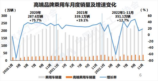 這也拉動了高端品牌乘用車的較快增長。11月,國內(nèi)生產(chǎn)的高端品牌乘用車銷量完成38萬輛,同比增長18.2%,同比增速超過乘用車市場23.8個百分點;1-11月,累計銷量完成351.1萬輛,同比增長12.7%。陳士華表示,在疫情沖擊下,高端品牌仍保持較強市場韌性,總體表現(xiàn)良好。