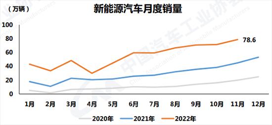 聚焦新能源汽車,11月產(chǎn)銷分別完成76.8萬輛 和78.6萬輛,同比分別增長65.6%和72.3%,市場占有率達到33.8%;1-11月,累計產(chǎn)銷分別完成625.3萬輛和606.7萬輛,同比均增長1倍,市場占有率達到25%。