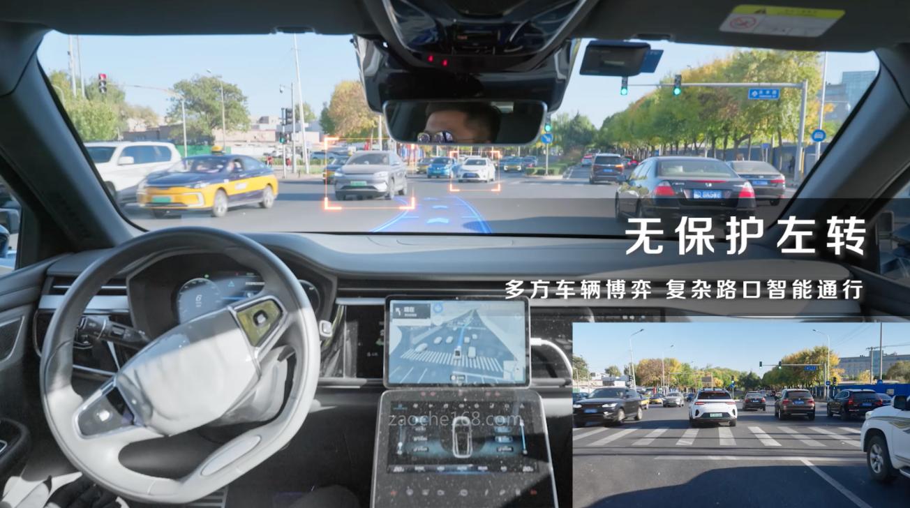 行駛至城市中最具有挑戰(zhàn)性的復(fù)雜路口場景時,搭載ANP3.0的車輛精準(zhǔn)躲避了路口外賣車“鬼探頭”,并在轉(zhuǎn)彎過程中與主路直行車輛進(jìn)行博弈后,實(shí)現(xiàn)了無保護(hù)掉頭。在沒有專門左轉(zhuǎn)紅綠燈的無保護(hù)路口,搭載ANP3.0的車輛也與對向直行車流博弈成功,完成無保護(hù)左轉(zhuǎn)。