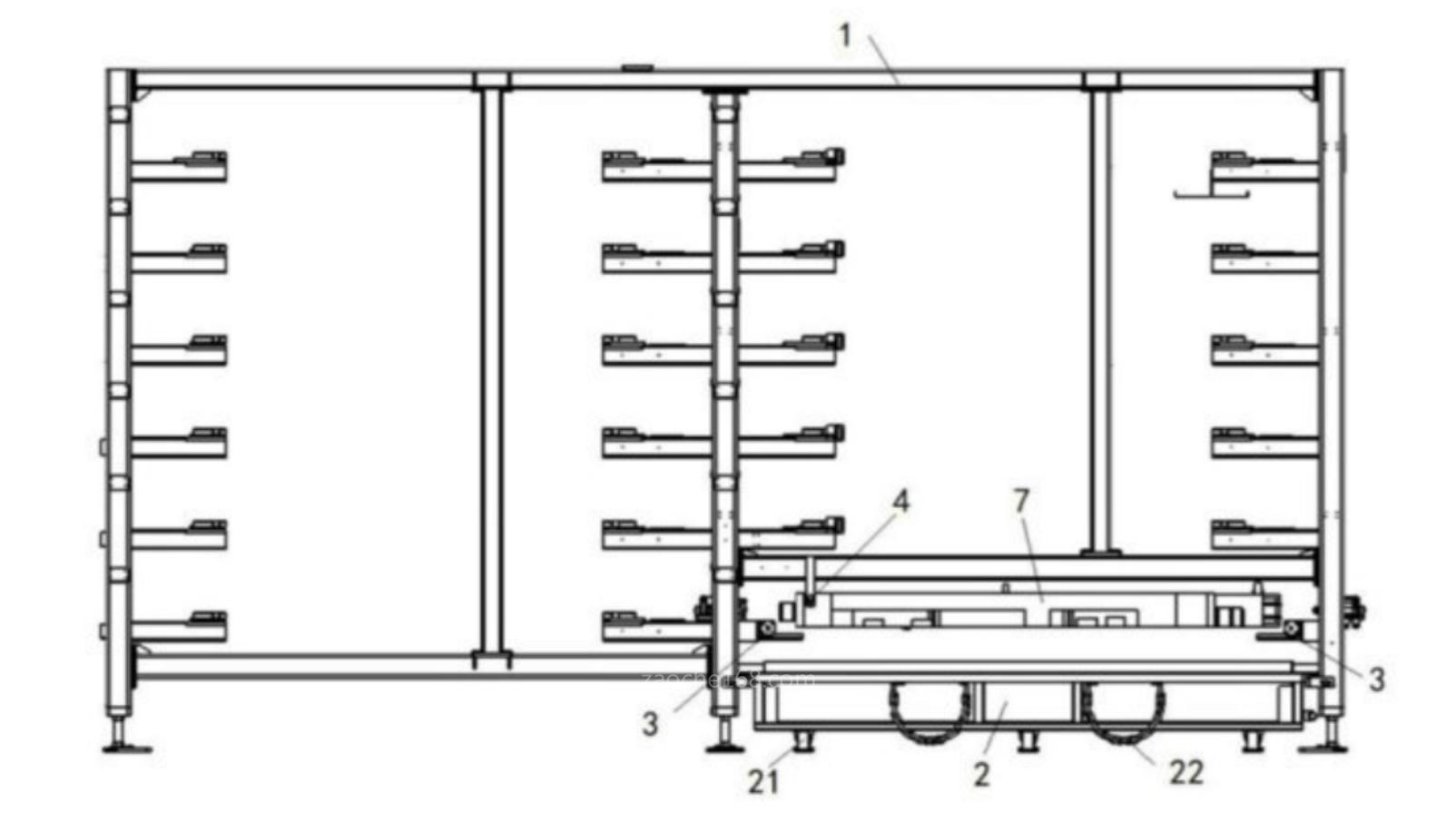 根據(jù)專利圖透露的信息,可以看到,蔚來三代換電站最大的優(yōu)勢(shì)在于,將電池組數(shù)量增加至22塊,這意味著相較于擁有13塊電池組的二代換電站而言,進(jìn)一步提升了車輛的換電效率。