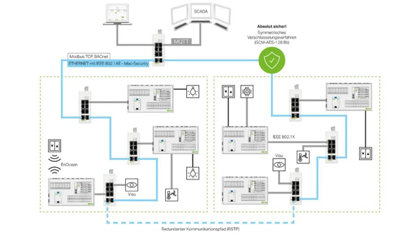 萬可新型管理型工業(yè)交換機助力用戶輕松提高樓宇自動化應(yīng)用的安全性。這一創(chuàng)新改造集成了網(wǎng)絡(luò)安全功能:在兩個端口對數(shù)據(jù)包進行128位加密。這允許將安全數(shù)據(jù)傳輸整合到現(xiàn)有的網(wǎng)絡(luò)中-無論采用何種協(xié)議,也無需改變應(yīng)用。加密符合IEEE 802.1AE標準(IEEE MAC安全標準),在確保數(shù)據(jù)完整性和發(fā)件人認證的同時,也確保了高數(shù)據(jù)吞吐量。