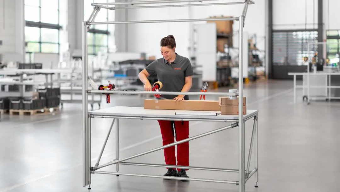 安裝臺面時可使用臺面自攻絲緊固件,如果是精益生產(chǎn)裝配系統(tǒng),可使用臺面自攻絲側(cè)面緊固支架?!耙郧埃覀冎荒茉O(shè)計基本的框架,但現(xiàn)在用戶可以設(shè)計完整的工作臺。”Thiel 強調(diào)說。