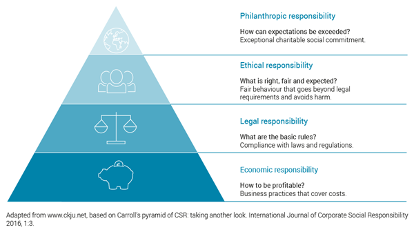 企業(yè)社會(huì)責(zé)任不僅對(duì)歐盟很重要,在世界范圍內(nèi)也不容忽視。比如《聯(lián)合國(guó)可持續(xù)發(fā)展目標(biāo)》、《經(jīng)合組織準(zhǔn)則》和國(guó)際勞工組織(ILO)都開始重視企業(yè)社會(huì)責(zé)任。阿奇 B?卡羅爾(Archie B. Carroll)提出的企業(yè)社會(huì)責(zé)任金字塔在有關(guān)企業(yè)社會(huì)責(zé)任的討論中具有很大的影響力。