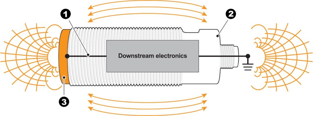 在電容式傳感器的情況下,基礎傳感元件是一個單板電容器,另一個極板連接是接地的。當目標移動到傳感器檢測區(qū)域時,電容值發(fā)生變化,傳感器輸出切換。