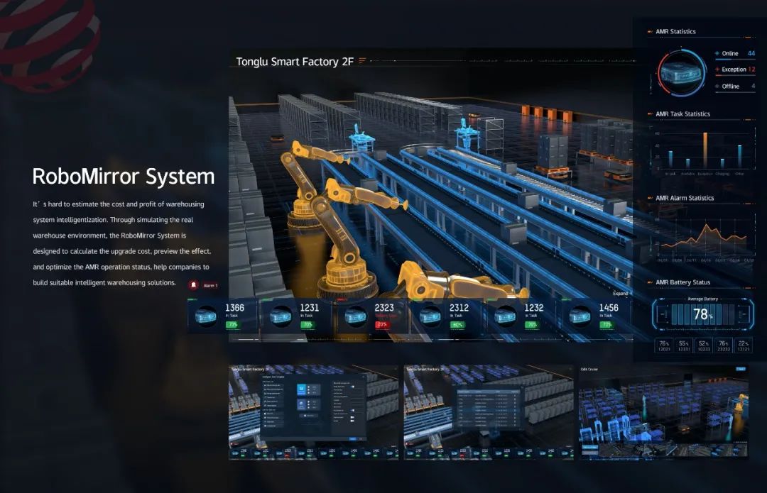 傳統(tǒng)倉(cāng)儲(chǔ)行業(yè)升級(jí)成智能化倉(cāng)儲(chǔ),通過(guò)RoboMirror System可以模擬現(xiàn)實(shí)倉(cāng)儲(chǔ)環(huán)境,計(jì)算升級(jí)成本,數(shù)字化預(yù)演及優(yōu)化AMR的運(yùn)行路徑和任務(wù)分發(fā)情況,并監(jiān)控AMR的整體使用效率,提高項(xiàng)目實(shí)施和交付的效率,幫助企業(yè)打造合適的智能化升級(jí)方案。