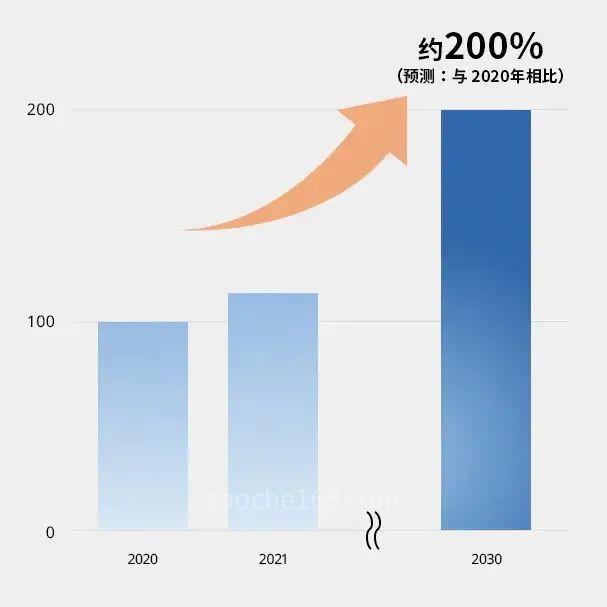 (2020 年的需求值用 100 表示。數(shù)據(jù)來源:TDK 的研究)