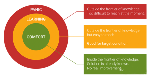 改進性的 KATA 與常規(guī)流程改進之間的關(guān)鍵區(qū)別在于目標情景明確。這有助于避免無組織的討論,防止沒有規(guī)劃的試驗,并阻止個人過于主觀臆斷。因此,改進性的 KATA 通過結(jié)構(gòu)明確的討論和科學的方法,更利于實現(xiàn)目標。