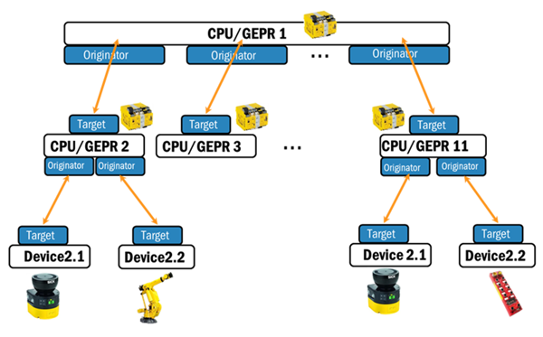 顯而易見,如想讓連接到EFI Pro系統(tǒng)中的各類傳感器或控制器能夠相互交互,傳遞信息流, 那么這些系統(tǒng)或設(shè)備是需要在同一子網(wǎng)中的。借助safety designer配置軟件可將相關(guān)節(jié)點設(shè)置對應(yīng)的IP及子網(wǎng)。
