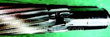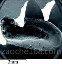 對(duì)疑似刀具進(jìn)行SEM掃描電子顯微鏡分析,成分基本與鑲嵌物一致,見(jiàn)表3。現(xiàn)場(chǎng)跟蹤減速機(jī)軸齒加工工藝,發(fā)現(xiàn)加工過(guò)程中所使用的刀具與缺陷相似[2,3],如圖10所示。