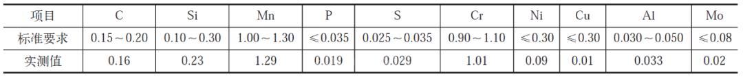 軸齒材料16MnCrS5+H,在缺陷樣品上取樣進(jìn)行光譜檢驗(yàn),該材料化學(xué)成分標(biāo)準(zhǔn)要求和軸齒的化學(xué)成分分析見(jiàn)表1,結(jié)果符合要求。