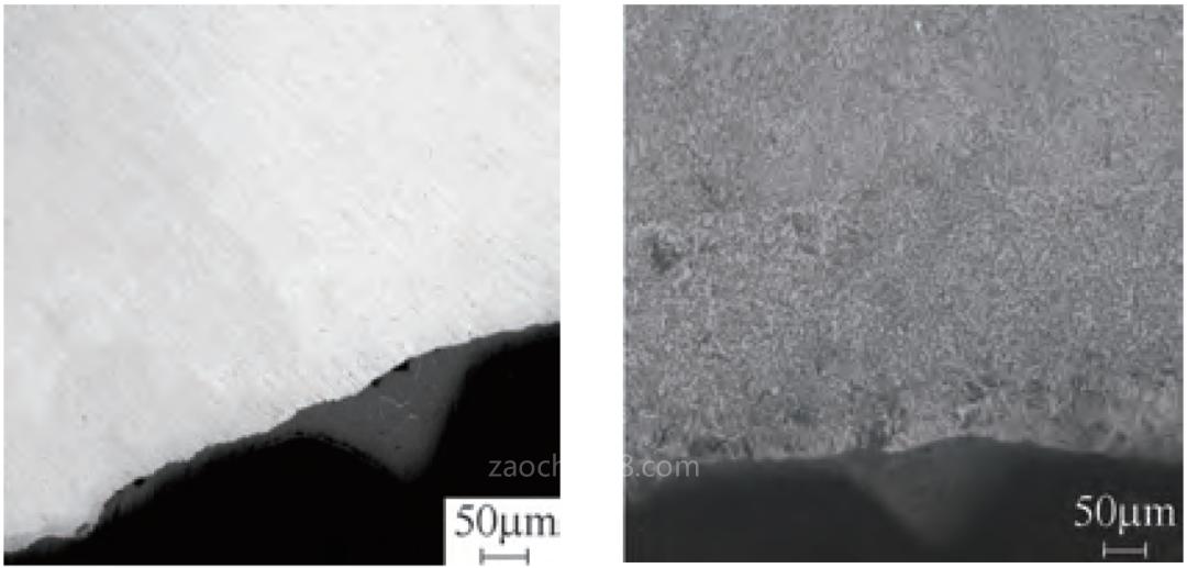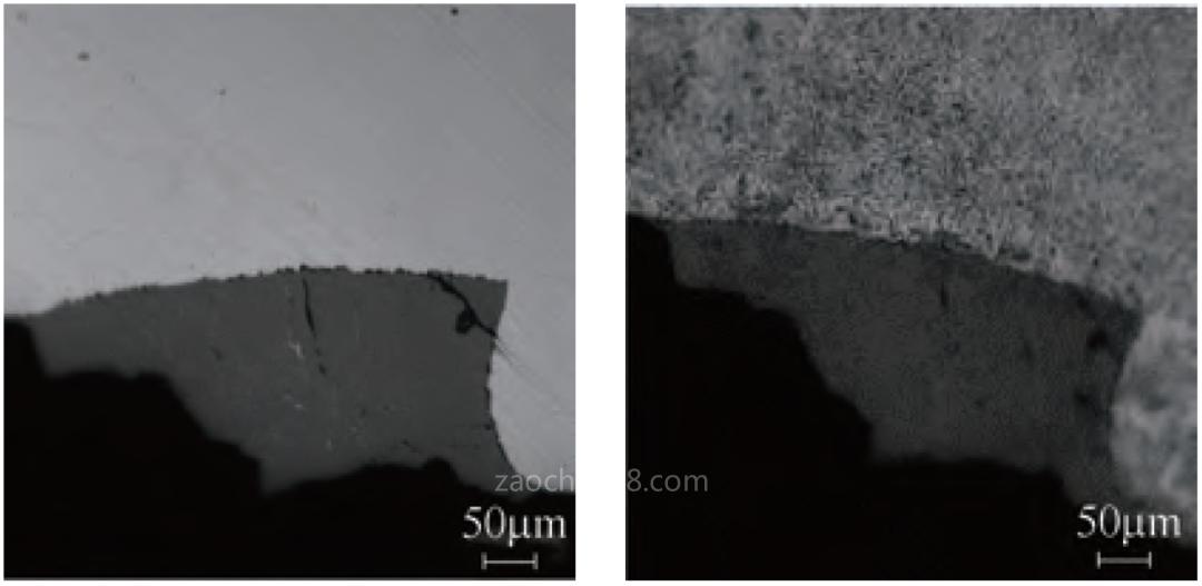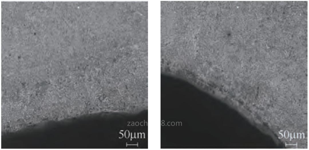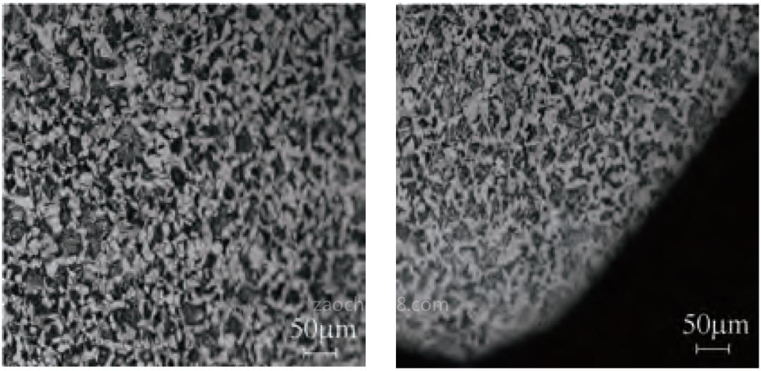 圖5 正?;w和正常軸齒尖部金相組織(200×)