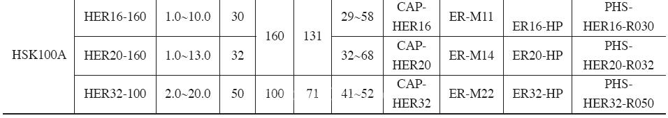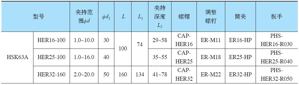 表1 普慧HER筒夾式高速刀柄規(guī)格尺寸(單位:mm)