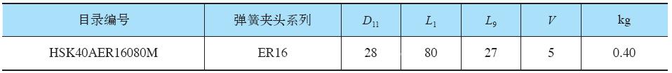 2. 肯納金屬HSK40型彈簧夾頭刀柄 肯納金屬生產(chǎn)的HSK40A型ER單角度彈簧夾頭刀柄如圖3所示,其規(guī)格如表2所示。