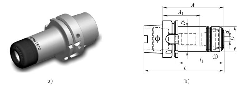 圖3 肯納金屬的HSK40A型ER單角度彈簧夾頭刀柄及其結(jié)構(gòu)
