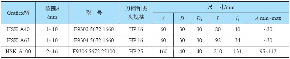 表3 山高公司的HSK-A型彈簧夾頭刀柄規(guī)格