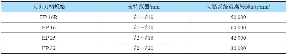 表4 5672型高精度彈簧夾頭刀柄夾持系統(tǒng)最高轉(zhuǎn)速