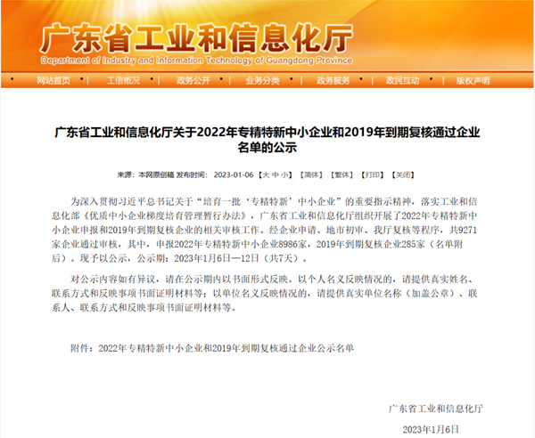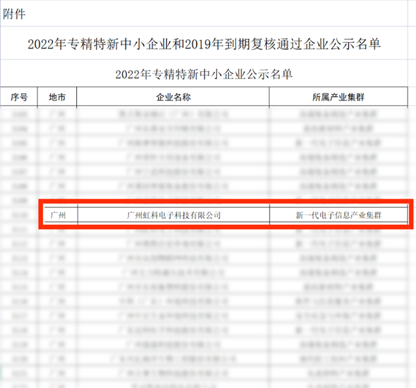 近日,廣東省工業(yè)和信息化廳對(duì)2022年專精特新中小企業(yè)和2019年到期復(fù)核通過企業(yè)名單進(jìn)行公示,虹科順利被評(píng)為“2022年廣東省‘專精特新’中小企業(yè)”。