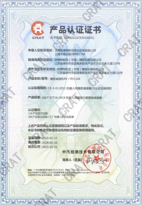 機(jī)器人用精密減速器CR認(rèn)證