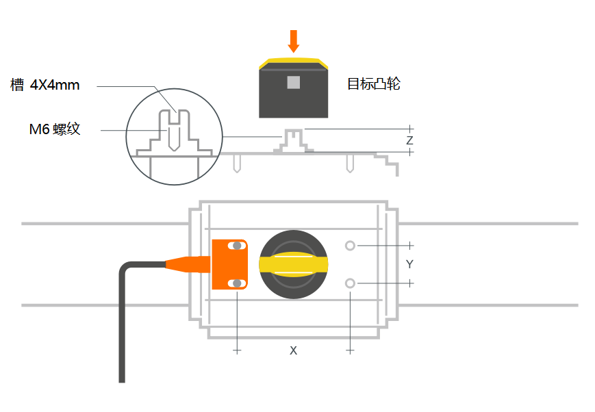 根據(jù)ISO Namur執(zhí)行器的尺寸選擇凸輪套件。X和Y尺寸顯示安裝孔的位置,Z尺寸是執(zhí)行器桿的高度。