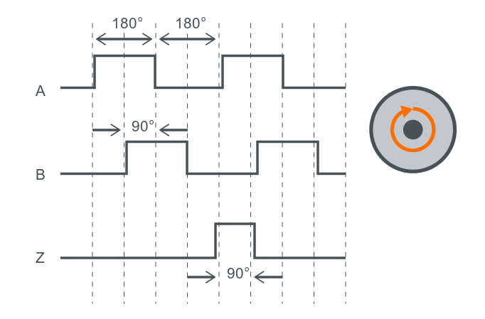 在軸旋轉(zhuǎn)一圈時產(chǎn)生的方波(脈沖)的數(shù)量被稱為分辨率。例如,一個分辨率為1024的編碼器在軸旋轉(zhuǎn)360°時將產(chǎn)生1024個脈沖。當(dāng)參考起始點,產(chǎn)生的脈沖數(shù)能表示當(dāng)前軸的位置。當(dāng)斷電重啟時,編碼器不保留位置值。
