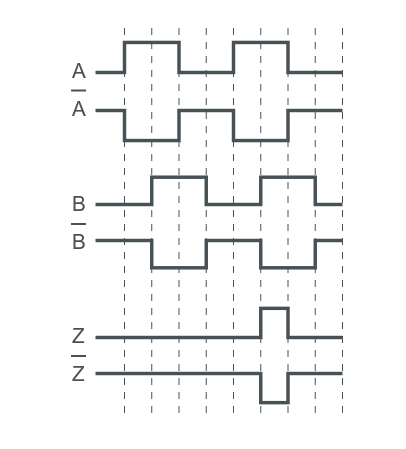 高端的增量型編碼器還包括通道A、B和Z的反轉(zhuǎn)(鏡像)狀態(tài)。通過監(jiān)測反轉(zhuǎn)和非反轉(zhuǎn)狀態(tài)之間的電壓降,可以過濾和去除電氣噪聲。這對于有長電纜的應(yīng)用特別有用。