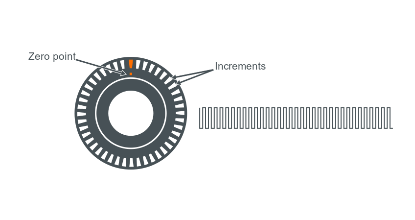 市場上編碼器主要有兩種類型 - 增量型編碼器和絕對型編碼器。增量型編碼器為編碼器上的每個增量提供一個脈沖(方波周期)。絕對型編碼器為編碼器上的每個增量提供一個唯一的編碼值。多圈版本絕對型編碼器還將圈數(shù)包括在編碼值中。