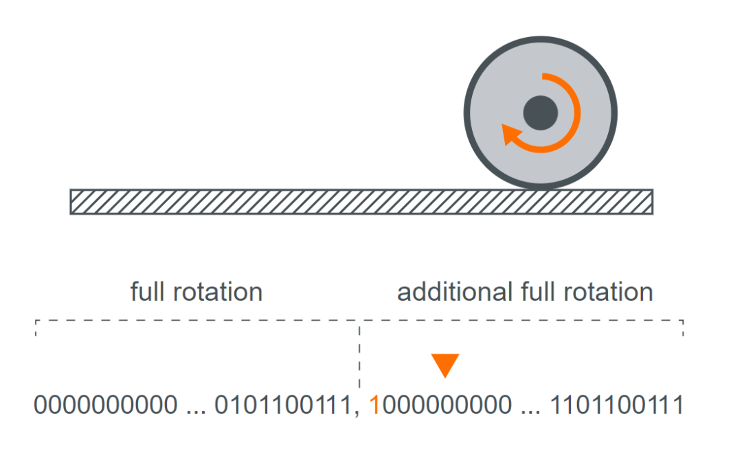 單圈編碼器將一個機械旋轉(zhuǎn)周期(0...360°)分成一定數(shù)量的測量點,由編碼器的分辨率決定。
