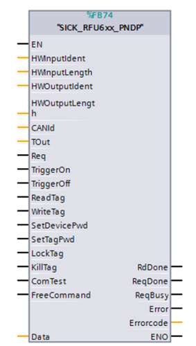 用戶可以從官網的下載專區(qū)(點擊藍字即可跳轉)找到產品對應編程軟件的功能塊,按照使用手冊直接進行導入和編程。依然以某歐系知名品牌為例,我們將超高頻的基礎功能,例如讀,寫和觸發(fā)動作均集成到了功能塊管腳中;除此之外還有滅活加密、用戶自定義命令、設置設備密碼和通訊測試功能全部集成。用戶可以根據需要進行調用而無需理解復雜握手機制和報文內容。
