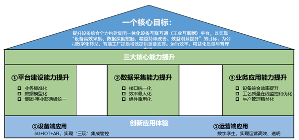 構(gòu)建集團統(tǒng)一的工業(yè)互聯(lián)網(wǎng)平臺,當前的主要目標是實現(xiàn)平臺建設能力、數(shù)據(jù)采集能力和業(yè)務應用能力的三大提升,以支撐集團規(guī)劃的兩個方向的創(chuàng)新應用場景: