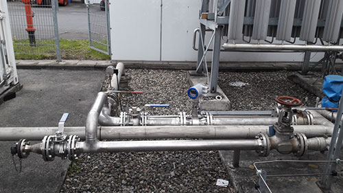在正常的操作過程中,該系統(tǒng)產(chǎn)生的氮?dú)馔ㄟ^一條 DN40 的管道被輸送到目的地。通常的標(biāo)況流量在 200 ~ 1500 Nm3/h 之間。在特殊情況下,氮?dú)庑枨罅靠赡軙哌_(dá) 3000 Nm3/h。此時(shí),通過 DN100 的旁路管道連接到備用罐,以滿足用氣的需求。為了無縫地測量最終客戶的實(shí)際氣體消耗率,必須覆蓋整個(gè)量程的流量測量,監(jiān)控氮?dú)獾妮斔汀5侥壳盀橹?,只?DN40 的小口徑管道上進(jìn)行流量測量。然而,此前所使用的熱式質(zhì)量流量計(jì),只能測量在正常工況下的流量。但無法測量 DN100 管道中的供氣量。