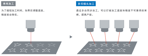 ① CK3M/CK5M系列可實現(xiàn)最多16個掃描頭同步加工,提高產(chǎn)能