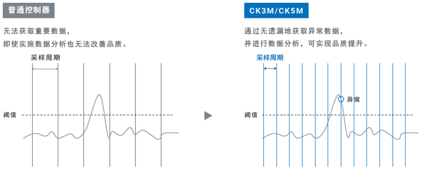 ① 在高速采樣周期內(nèi)無遺漏地獲取異常數(shù)據(jù),助力品質(zhì)提升。